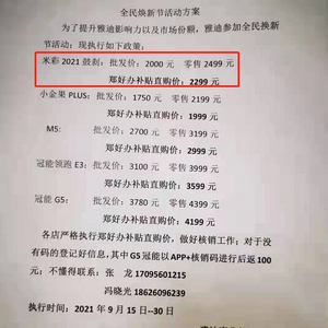 消费者周某提供的雅迪全民焕新活动方案