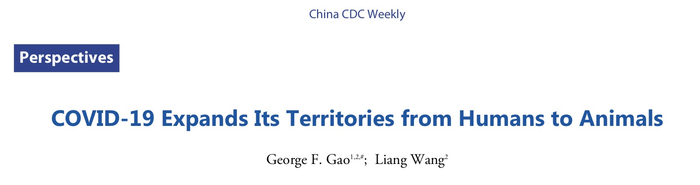近日,中国疾控中心主任、中科院病原微生物与免疫学重点实验室主任高福院士等人发文提醒,在制定疫情防控策略时,仍需注意多项因素。该观点文章发表在《中国疾病预防控制中心周报(英文)》(China CDC Weekly),题为《COVID-19从人类扩展至动物》(COVID-19 Expands Its Territories from Humans to Animals)。