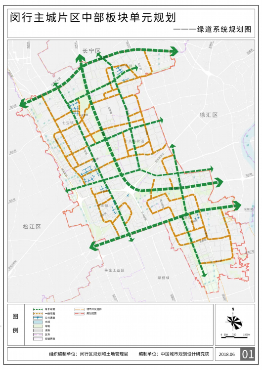 慢行系统规划骨干绿道,由区域级绿道和城市级绿道组成。区域级绿道是链接中部板块和周边地区的重要通道,沿沪渝高速、外环高速和春申塘布局,形成两横一弧的绿道骨架,总长约29公里。城市级绿道是链接单元内部街镇的重要通道,主要沿淀蒲河、新泾港、横泾、横新-漕河泾港以及梅陇南北向结构性绿带设置,总长约42公里。