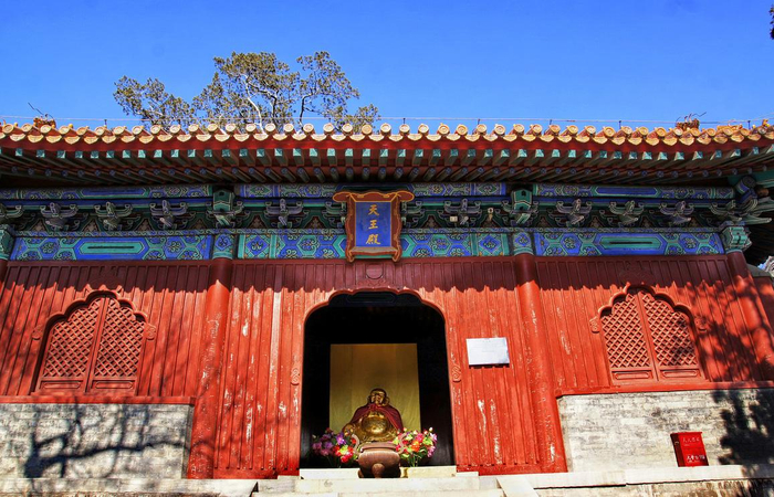 现在法海寺之“山门”,乃护法金刚殿是也。在门楣上挂着的“法海禅寺”匾额,是由中国佛协会会长赵朴初所题写的。往里走,便是天王殿。这座殿堂,与金刚殿一道,是上世纪八十年代才重新建造的。
