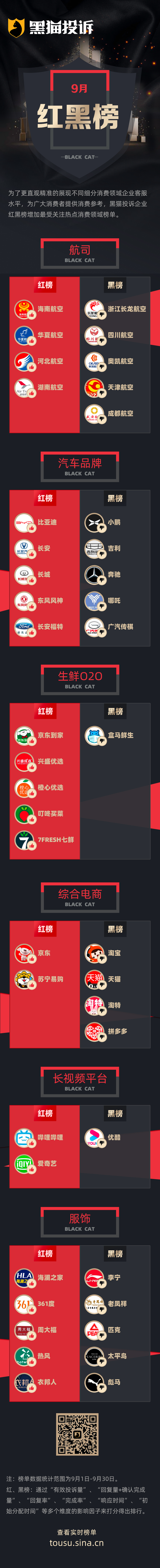 黑猫投诉9月行业榜单