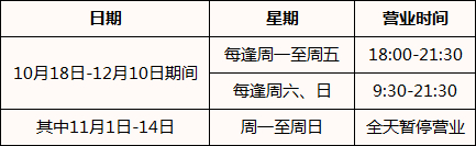 “天津之眼”摩天轮景区按照年度例行维修养护计划,将于2021年10月18日至12月10日期间进行保养检修,12月11日恢复正常运营时间。营业时间调整如下: