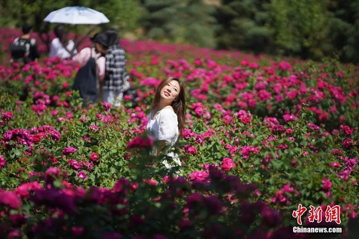 昆明安宁,食用玫瑰采摘中。中新社记者 刘冉阳 摄