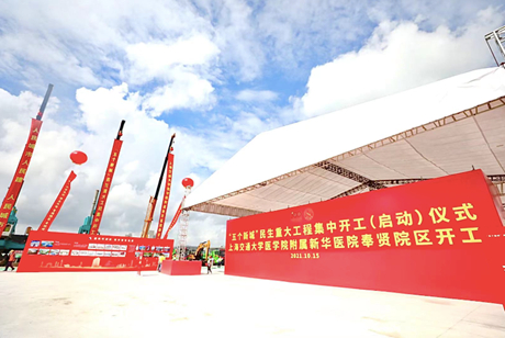 10月15日,上海市“五个新城”集中启动一批民生重大工程,上海市委书记李强、市长龚正在主会场参加开工仪式。上海交通大学附属的4所医院参加建设的重点项目,分别在奉贤新城主会场和嘉定新城、松江新城、南汇新城分会场同步开工。上海交通大学副校长张安胜在上海交通大学医学院附属新华医院奉贤院区主会场,副校长奚立峰在上海交通大学附属第六人民医院南汇分会场参加开工仪式。