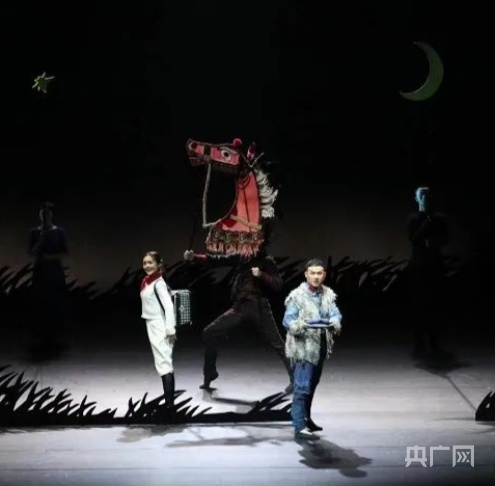 至于皮影道具黑骡子和红鬃烈马,简直神来之笔。每个观众都会自然联想到人与骡马的神秘联系,那种对求生的渴望、对胜利的追寻和回到故乡的渴望,始终并行在肉体和灵魂里。骡子自小得到养着黑骡子,喂养它,庇护它。长征开始,骡子被征入运输队,他们勇敢而踉跄着前行,他们互相是对方的天,哪一个没了,对方的天就塌了。黑骡子被炸死那一刹那,操纵黑骡子的人缓缓下场,灯光暗下来,场内静下来,骡子的精神坍塌了。古小姐与红鬃烈马也是互相依偎取暖的伴侣,她高兴时,它跟着欢腾;她畅想时,它静静地守候;她牺牲时,它悲鸣。她是它的伙伴,它是她的映照,她那么可怜见,幸有它的护卫,她不孤单。观众对黑骡子和烈马的假定性心照不宣,却又心甘情愿被其俘获。那一刻,心头实实在在有了窒息感。这样两个皮影,开发了我们对自己观望一件真实可触的事物的维度,也让我们得到了探看事物表象之外其他内涵的能力。比如那战争里有无数匹马、骡子,无数个士兵,每个人背后都牵连着他们自小长大的家庭和村庄,每一枚炮弹的炸裂都将瞬间令周围所有人的生死未卜……任何一个微不足道的灵魂,都有权利接受奇迹的降临,只要他足够相信。