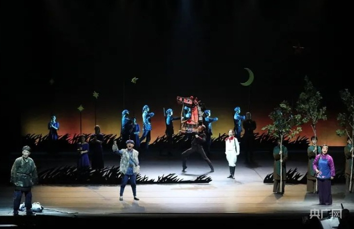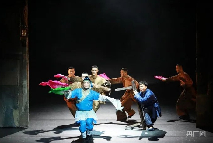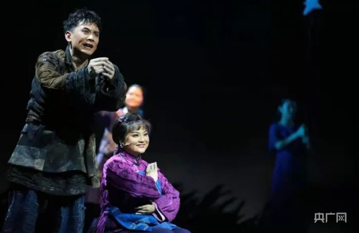 在《一个人的长征》中,她继续尝试从戏曲框架中寻找非程式化“新歌舞”演绎故事、抒情写意的可能性,包括非程式化的人物形象塑造、情感抒发,和非程式化的舞台意境营造。赣南采茶戏的边界模糊,正好提供了许多契机,可以将“松动”的非程式化歌舞表达充分贯彻到演员表演中,试图在每一个演员身上建立不拘一格的音乐形象和形体语言,这种音乐形象和形体表达洋溢着鲜活拙朴的美感,其语汇构成可以是人物自己的舞蹈化动作、人物与人物之间的形体组合、人物与道具之间的造型关系,可以是戏曲舞蹈语汇、民间舞蹈语汇,甚至现代舞蹈语汇,全都服从“充分表达人物情感”这一根本目的。“新歌舞场面渲染”和“新歌舞人物表演”双管齐下,构成了全新的虚拟写意舞台意象。