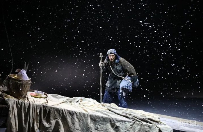 氍毹梦圆,灯光暗场,在离开剧场的时刻,我总在想,这么一个现代意味浓厚的寓言故事,是怎样让我们为之笑为之哭为之感到真实不虚的痛?我想到如今一窝蜂一门心思标榜创新者,说穿了,其实是一个伪命题。打比方说,汉朝古墓出土莲子数枚,经过培育居然发芽长叶开花!好好,公认无讹者籽是古籽,花是今花。因该花吸收今之阳光雨露,为今人所见。故理应上帝的归上帝凯撒的归凯撒,二者有联系,二者不相干。今人不必刻意创新,新自在其中,如影随形摆脱不掉,正如古籽今花乃吸收今之阳光雨露生发,今沉潜血脉自在当中,何苦挖空心思另外去搞什么创新?生命不可复制,模仿不是创造,只有在继承前人的基础上的个体生命的自然滋长,才会有个性、才会具备无可替代性。张导在观念上、艺术风格和气质上回归源头、回归“大地”,过滤、提纯、打磨、淘洗出最纯粹的精华,传统与现代、古典与时尚获得一种神奇的链接,在看似消逝了宏大表达后,在最动人的人与情之间,升华出最坚实的思想情怀,唤醒民族记忆,达致民族理想。