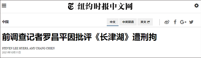 移花接木!《纽约时报》竟称大V“罗某平”被刑拘因批评《长津湖》