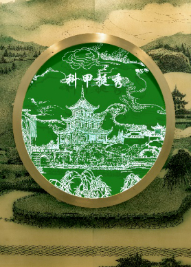 《贵阳拾景》工艺采用玻璃内雕与黄铜蚀刻等复合制作,将传统线描绘制的古意浓厚的贵阳山水图卷铺陈在金色基底上,以凸显圆形画框里面的“贵阳拾景”。以青色为主色调再现贵阳南江大峡谷、天河潭、黔灵山、青岩古镇、文昌阁、甲秀楼、花溪公园、阳明祠、筑城广场、孔学堂十个标志性旅游景点,蕴含“绿水青山好贵州,爽爽避暑在贵阳”之意。