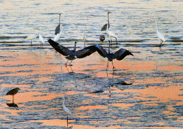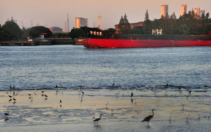 徐浦大桥的港口渡口,大批野生鸟类云集于此