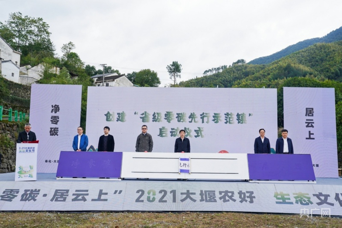 现场,大堰镇“省级零碳先行示范镇”创建启动仪式举行。据了解,作为全国首个生态环境教育特色镇,大堰镇一直致力于通过围绕低碳环保的理念,因地制宜打造一系列活动,营造不一样的乡村文旅氛围,更好地传播净零碳理念,解锁美丽乡村新体验,擦亮“乡愁小镇 云上大堰”的乡村文旅“金名片”。