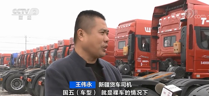 新疆货车司机 王伟永:国五车型,裸车的情况下,也得32到33万元,办完手续也得37万元左右。按这台车来算,把价格谈一下,可以便宜10万元。现在买比较合适,赶快下手,回家挣钱。