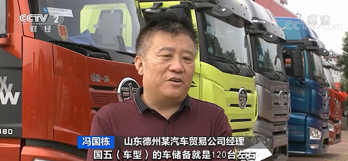 山东德州某汽车贸易公司经理 冯国栋:国五车型的车储备120台左右,卖了两个月以后,现在还有90台左右。公司销量最高的时候,一个月能提150到160台,七八月份一共提了不到50台车。