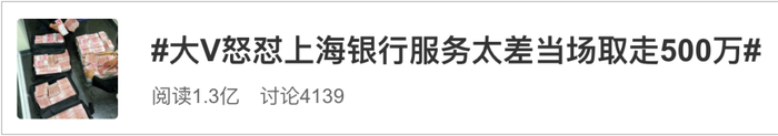 “大V怒怼上海银行服务太差当场取走500万”