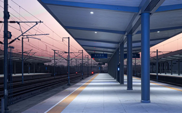 安庆西站位于安庆市怀宁县茶岭镇,距安庆市区约30公里,总建筑面积39976平方米;站房分为地上四层、地下一层,局部设夹层,高度38.49米;站房主体为框架结构,屋盖采用钢结构+直立锁边铝镁锰金属屋面。