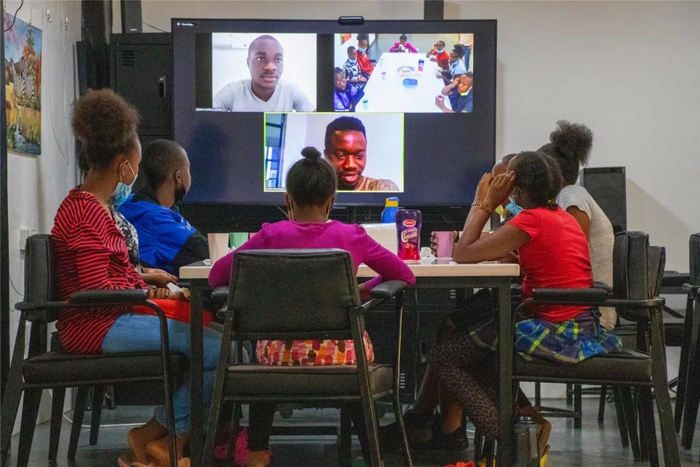 每周六下午,在肯尼亚的吉素来44区和金曼门社区的“Konnect Hub(诺联中心)”,三五成群的当地孩子总会聚集在一起,通过网络聆听世界的声音。在这里,来自不同国家的志愿者们通过大屏幕,带来世界各地的风土人情,同时也向他们讲授数学、地理、历史、艺术等其他令孩子们感兴趣的内容。