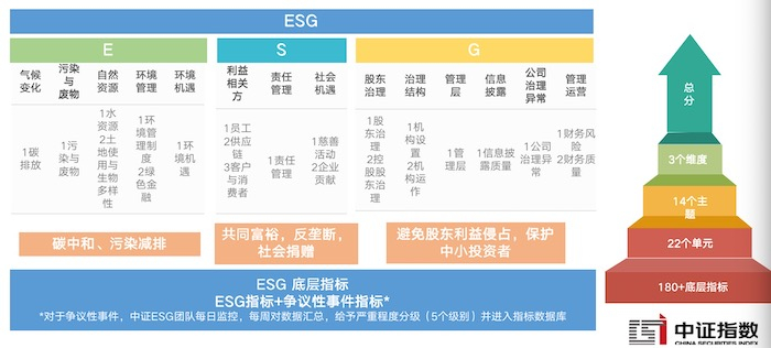 积极的趋势是,除了MSCI、标普等国际指数机构,例如中证指数等国内机构也开始探索ESG评级方法和标准。相比起国际机构,国内机构的优势在于,立足国内经济与市场发展实际,选取更适应本土市场指标,包括:“环境”一项设置碳中和、生物多样化等指标;“社会”项设置扶贫、共同富裕指标,注重企业履行社会责任对社会整体的价值;“公司治理”项区分对待国有企业股权集中度问题,关注内部治理中的党建作用等。