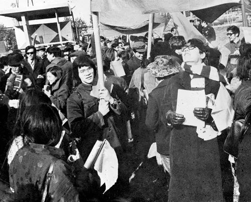 1971年11月11日,旅居美国爱国华侨从美国各地来到纽约肯尼迪国际机场,热烈欢迎中华人民共和国出席联合国大会第26届全体会议的代表团。图为爱国华侨青年,兴高采烈地等候祖国代表。新华社发