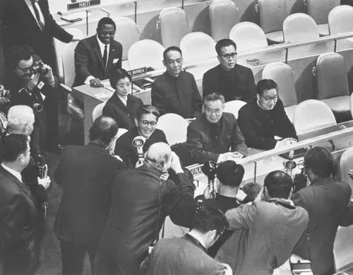 1971年11月15日,美东时间10时15分,中国代表团成员在热烈掌声中步入联大会议厅,首次坐到置有“CHINA”名牌的席位上。