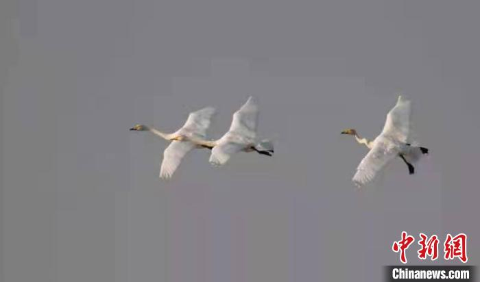 首批西伯利亚大天鹅飞临“中国大天鹅之乡”山西平陆越冬。 平陆县林业局野生动植物保护站供图