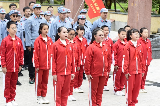 在红军飞夺泸定桥纪念碑前,诗书长征路活动首发团全部团员庄严肃立,泸定县泸定桥小学的12名小学生在德育处主任献德仙的指引下整齐划一,慷慨激昂地朗诵《七律·长征》等红军长征诗词。