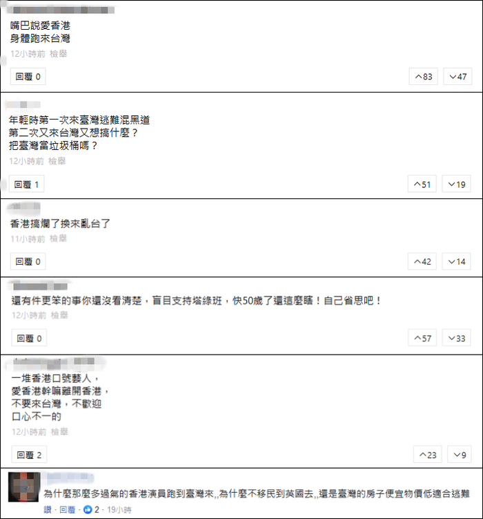 还有人则对杜汶泽等煽暴香港艺人接连跑路到台湾上蹿下跳表示不满,真真看厌了这群跳梁小丑,“为什么不移民去英国,都跑来台湾,是台湾物价房价低得很适合跑路吗?”“搞乱了香港,现在又来祸害台湾!”