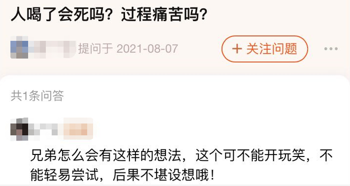 也许只是无聊网友的玩笑,但还是有很多网友在下面认真回复:千万不要喝,一定会后悔的,想想活着多好啊。