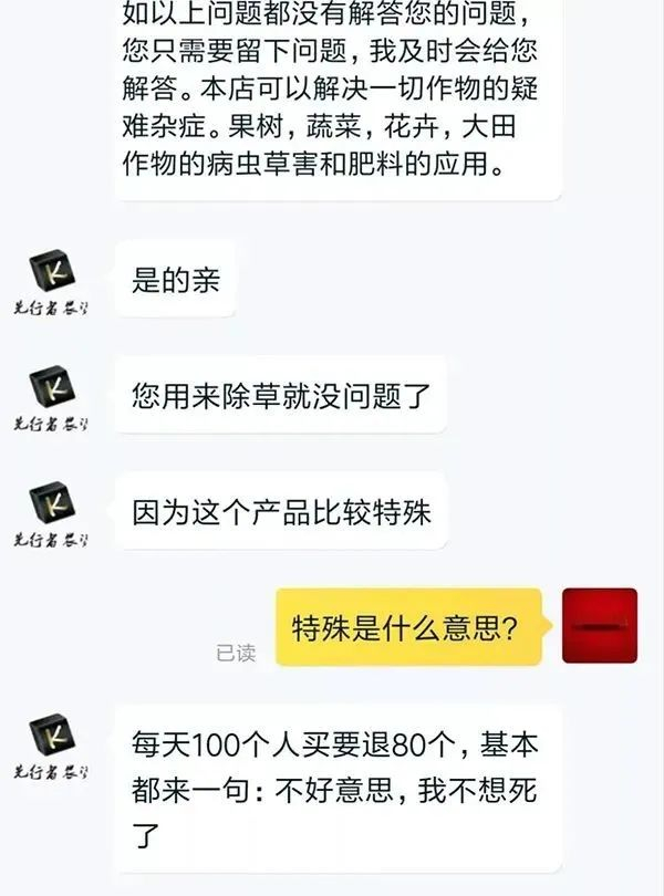 “每天100个人买要退80个,基本都来一句:不好意思,我不想死了,所以我发货之前都要问问。”