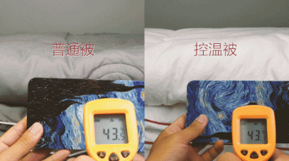 还没完,神奇的在这:我们又将板子起始温度调到 43℃ ,放进两款被子里。