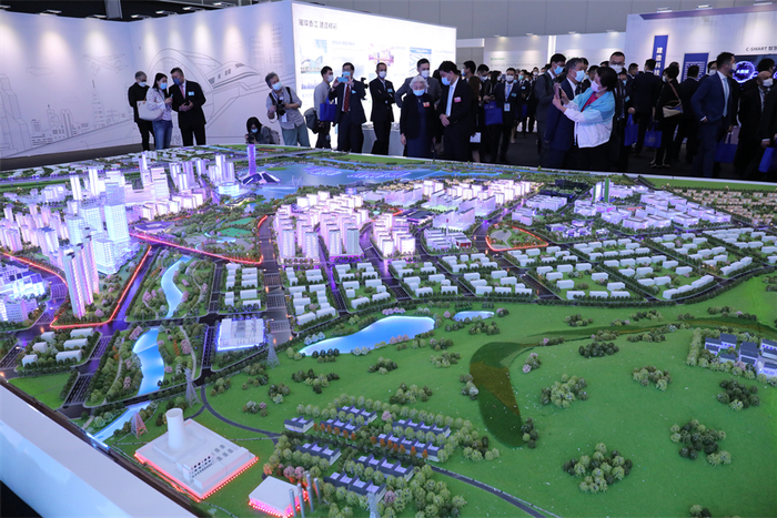 10月25日,香港,“时代精神耀香江”之大国建造主题展在香港会展中心开幕。图为中建幸福城沙盘模型。中国网 戚易斌 摄