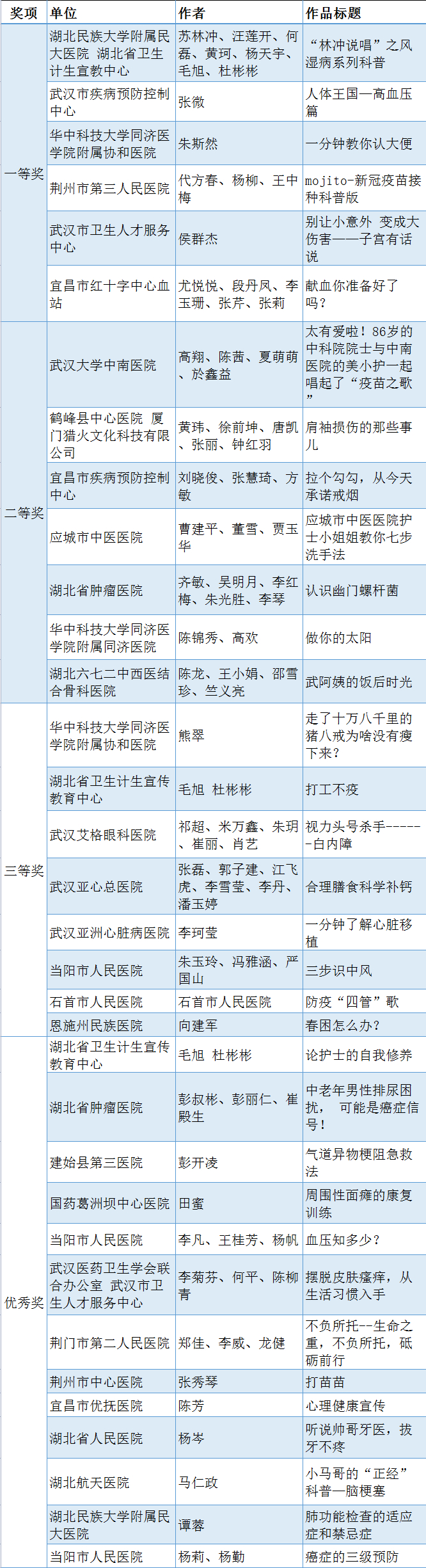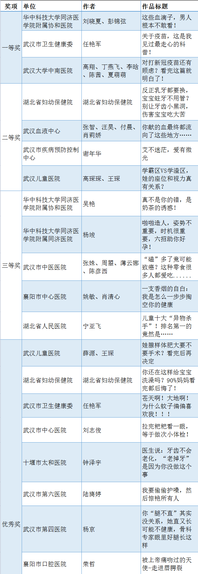 获奖名单正式公布