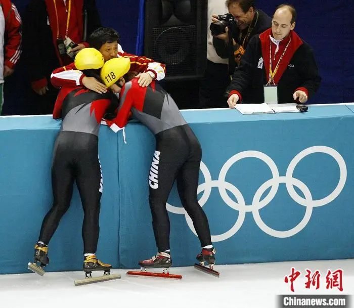 赛后,杨扬振臂高呼,两位中国姑娘紧紧相拥,场边的主教练辛庆山也与两名爱徒共同庆祝着这一历史时刻。