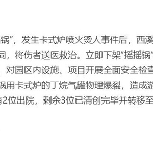 央广网北京10月27日消息 据中央广播电视总台中国之声《新闻超链接》报道,每年到降温的季节,用便携式卡式炉吃火锅就成了不少消费者的选择,然而由此引发的险情并不少见。近日,杭州西溪湿地公园游客在船上吃火锅,卡式炉喷火致5人受伤,经调查,初步判定该突发事件为火锅用卡式炉的丁烷气罐物理爆裂,造成游客烫伤。业内人士提醒,卡式炉虽然方便却存在安全隐患,必须科学使用,按规范操作。