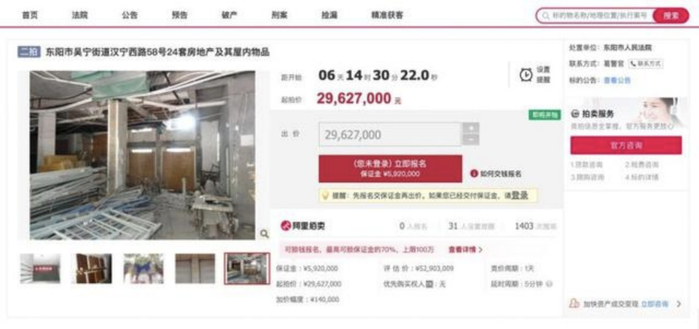 8月25日,浙江金华东阳市公安局公开拍卖本色控股集团有限公司名下24套房产及屋内物品,起拍价2962.7万元。