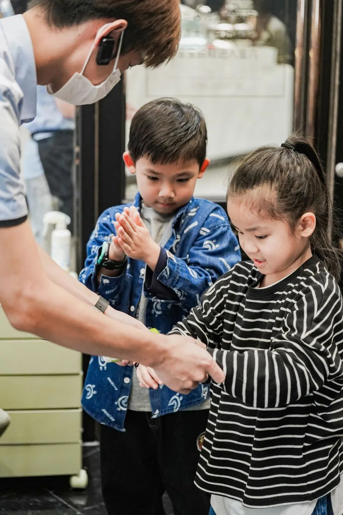 小朋友进店需要测体温、换防滑袜;服务生小哥哥会帮助宝宝们在专属洗手池洗手,开启干净卫生的游玩之旅!