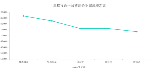 黑猫投诉货运企业投诉数据对比:运满满完成率较低