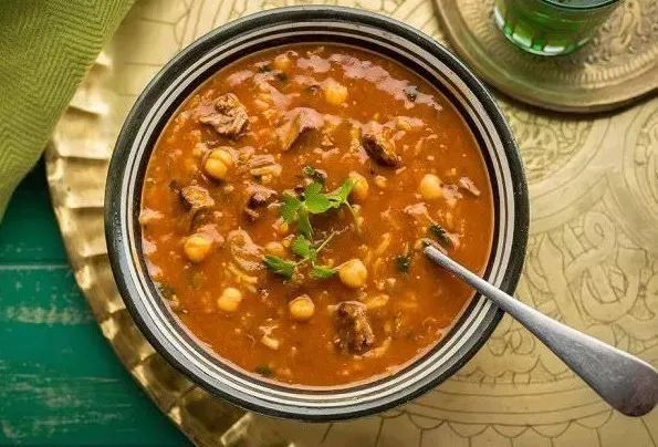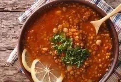 这道菜可以说是一顿完整的饱腹餐,其中含有许多营养物质。它的食材主要是肉类,比如鸡肉,以及不同类型的蔬菜和谷物,如扁豆、鹰嘴豆等。