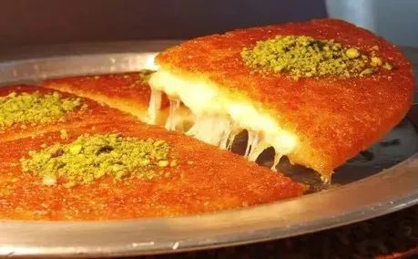 Kunafa是一种酥脆的黄油甜点,由一层层大麦面团制成,在面团里撒上糖浆,并点缀上开心果粉,Kunafa就制作完成了。