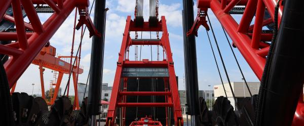 SCC98000TM项目经理李利斌介绍:“4500吨的使用频率一般较2000吨低。当一个场地暂时没有4500吨的作业任务,而该场地恰恰有2000t的作业任务时,4500吨只需要更换少数几个部件,就可以拆解成2000吨使用,避免大马拉小车,能耗更低、占地面积更小、灵活性更强。”