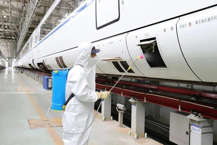 为做好疫情防控工作,中铁兰州局加大对车站公共场所消杀力度,全天候通风换气,对进出站闸机、客运电梯、售取票机、座椅、门把手以及列车设施设备加密消毒频次,严格把好站车关口,全力确保旅客健康安全。