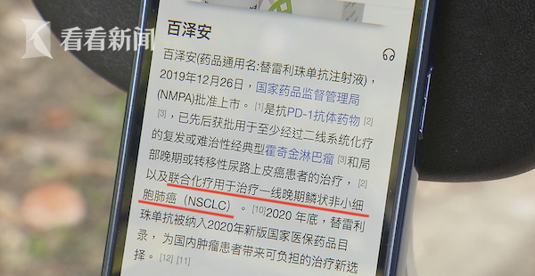 前不久,黄先生的父亲被确诊患有右肺上叶鳞癌IIIA期(肺鳞癌),医生判断属于此类癌症的中晚期。术后一年间他们支付治疗药品百泽安的费用近6万元。黄先生告诉记者:“医生说百泽安就是针对IIIA期的一个用药。”本以为沪惠保首年可报销70%,没想到保险公司因患者的病情并非“中晚期”并存,也未达到晚期,拒绝理赔。