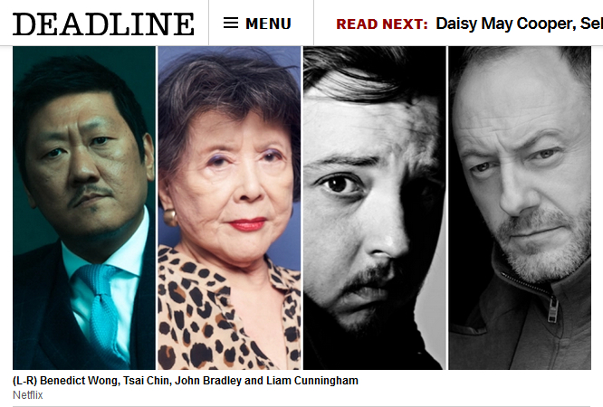 虽然The Hollywood Reporter、Variety等媒体均未提及演员所对应的角色,但DEADLINE的报道中着重介绍了其中四名演员,《奇异博士》《复仇者联盟》的本尼迪克特·王,李少红版《红楼梦》“贾母”、《尚气与十戒传奇》的华裔演员周采芹,以及《权力的游戏》的约翰·C·布莱德利和利亚姆 · 坎宁安,可能这四人会在剧中饰演主要角色。