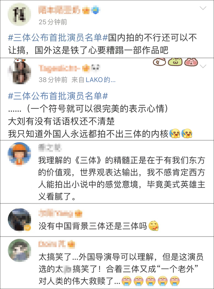 原标题:网飞版《三体》公布阵容,绝大部分非亚裔演员引争议