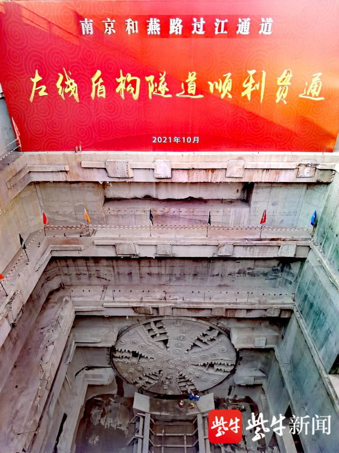 2021年10月30日上午10时许,南京市栖霞区和燕路与燕恒路交叉口,随着“复兴号”盾构机刀盘破土而出,和燕路过江通道左线盾构顺利贯通,为2022年底全线建成奠定了坚实的基础。这是国内首例超大直径盾构穿越岩溶区,也是迄今为止长江上建造最困难的过江通道之一。