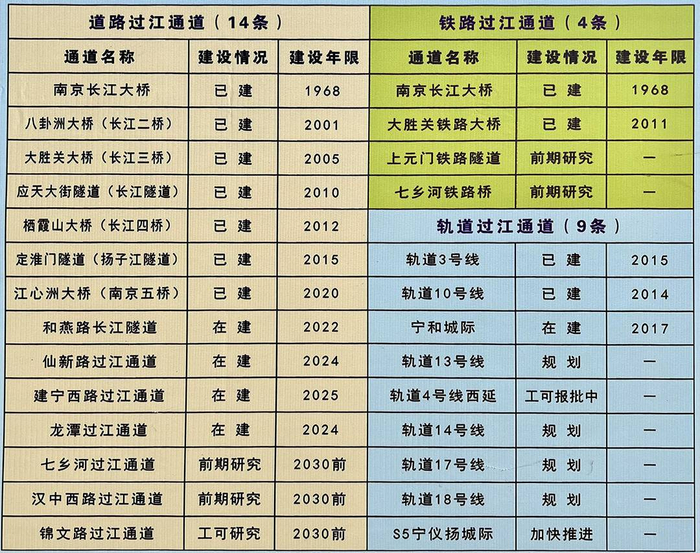 根据《长江干线过江通道布局规划(2020-2035)》,截至2035年,南京市共规划过江 通道24处,计27条。