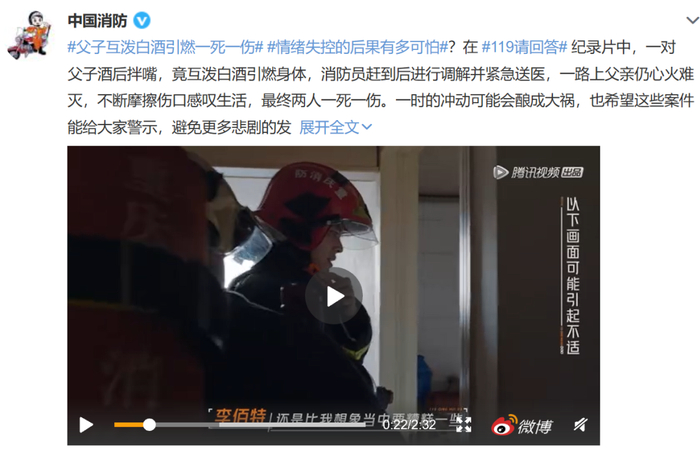 2020年6月3日,重庆市渝中区一对父子酒后拌嘴,一气之下竟互泼白酒,还点火引燃两人的身体!