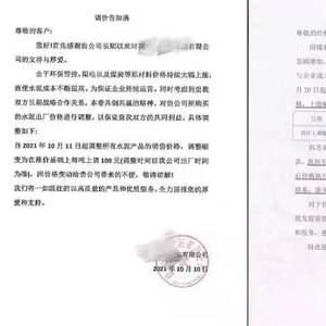 中新经纬注意到,“十一”假期后,多个建材家居企业发布涨价通知,涉及水泥、玻璃、陶瓷、家居等领域。华鹏陶瓷发布调价通知函表示,自10月26日起,全系列价格上涨5%-10%;南昌海螺水泥宣布自10月17日起,公司各种品种水泥价格上调40元/吨;上爵电器称,自10月20日起,所有照明产品在现有的价格基础上,上调5%-10%。