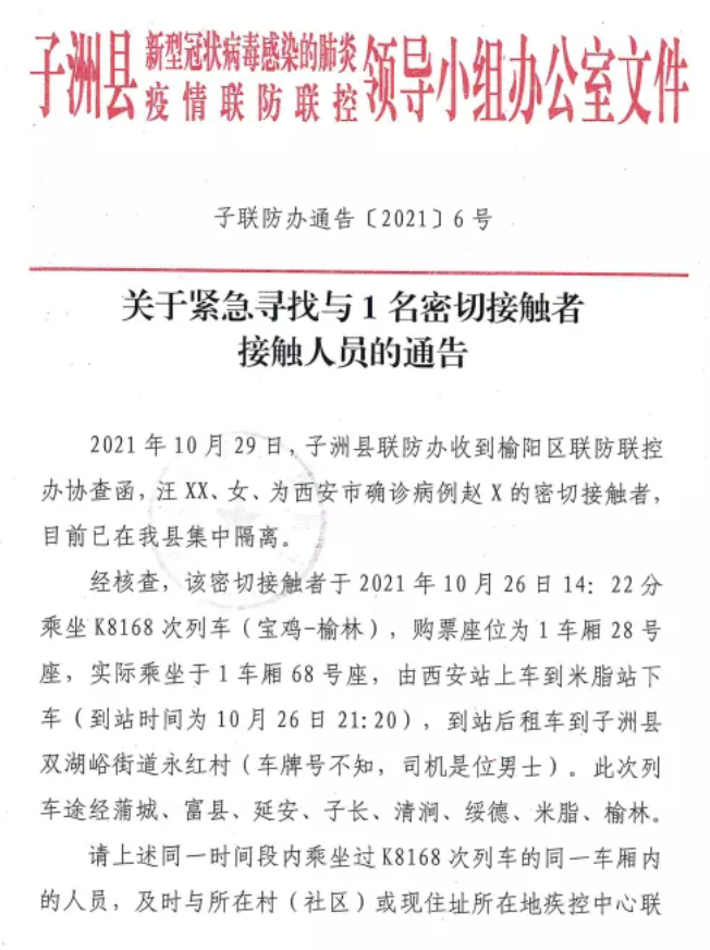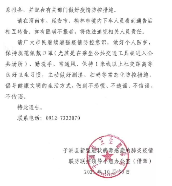 陕西榆林市子洲县发布疫情防控重要通告