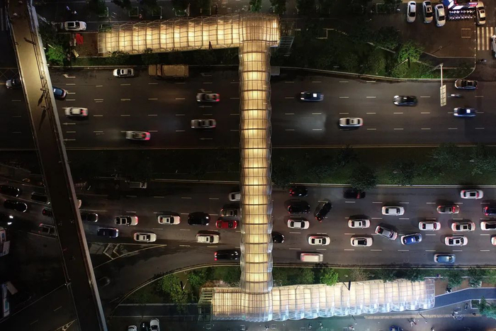 K2天桥位于南山区前海路与南新路之间,天桥南北两侧均为密集居民区,上下班高峰期人流量多,行人过街需求大。