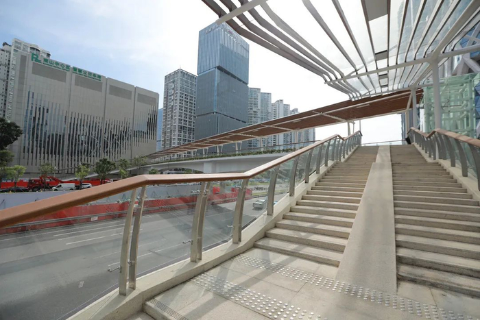 项目在月亮湾大道至后海滨路之间共设置建设了4座人行过街天桥,其中,滨海海滨立交K4人行天桥已于2021年7月开通,目前余下 3 座天桥也已通过竣工验收,并投入使用,市民出行将更为便捷!